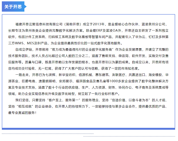 開思首個(gè)獨(dú)立開發(fā)系統(tǒng) -智慧車間云 日期:2021-08-13 / 人氣: / 來源:Kaisi 上一篇← 下一篇→ 推薦內(nèi)容 Recommended 金蝶與華制智能締結(jié)戰(zhàn)略合作伙伴關(guān)06-30 相關(guān)內(nèi)容 Related 想給你的溫暖,不僅僅是這個(gè)冬天02-14