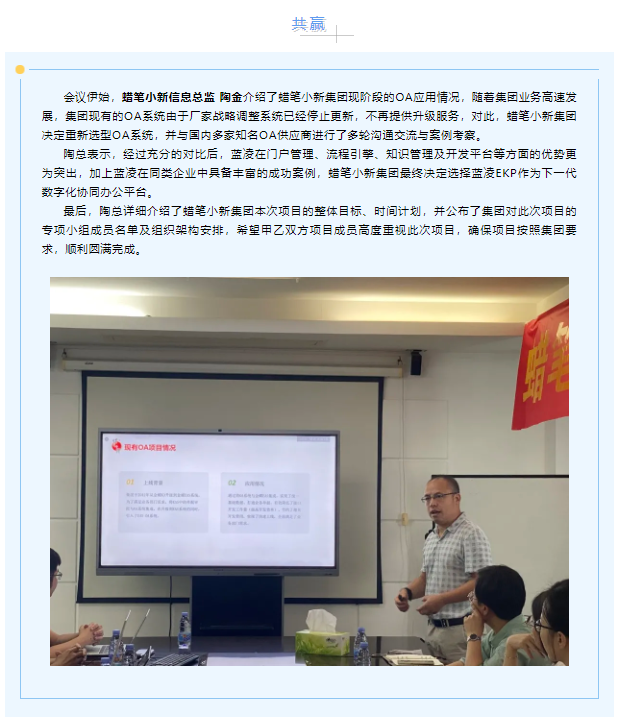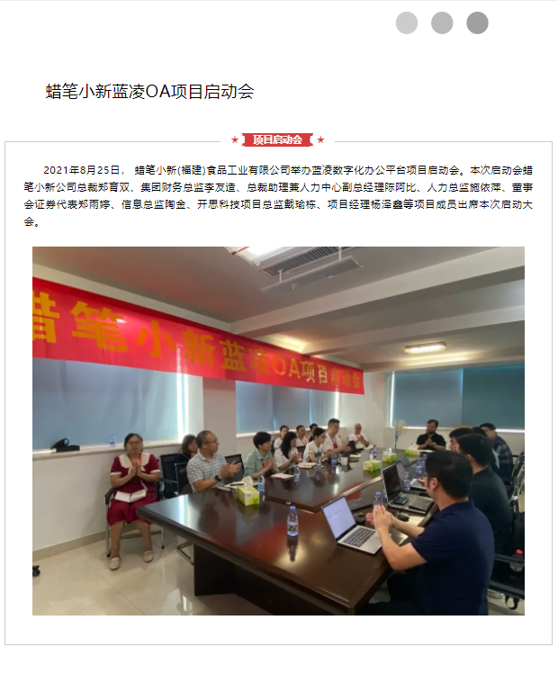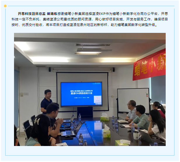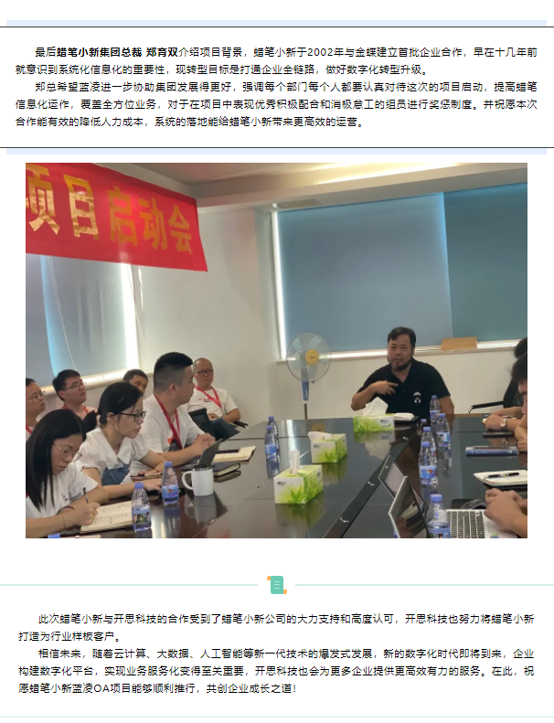 蠟筆小新藍凌數字化辦公平臺項目啟動會 日期:2021-09-02 / 人氣: / 來源:Kaisi 上一篇← 下一篇→ 推薦內容 Recommended 金蝶與華制智能締結戰略合作伙伴關06-30 相關內容 Related 格瑞特公司數字化管理項目啟動會11-17 走進興翼機械,共探數字化轉型之道08-31